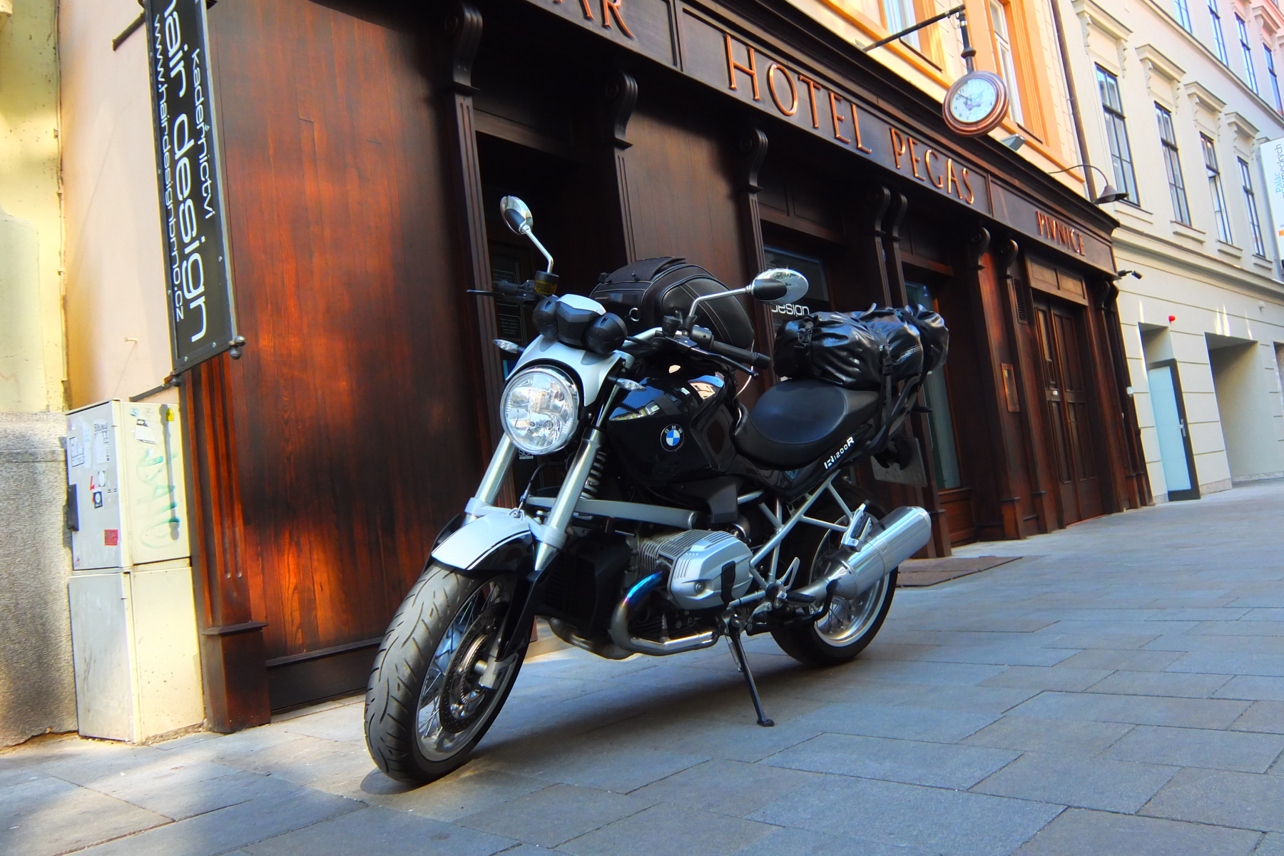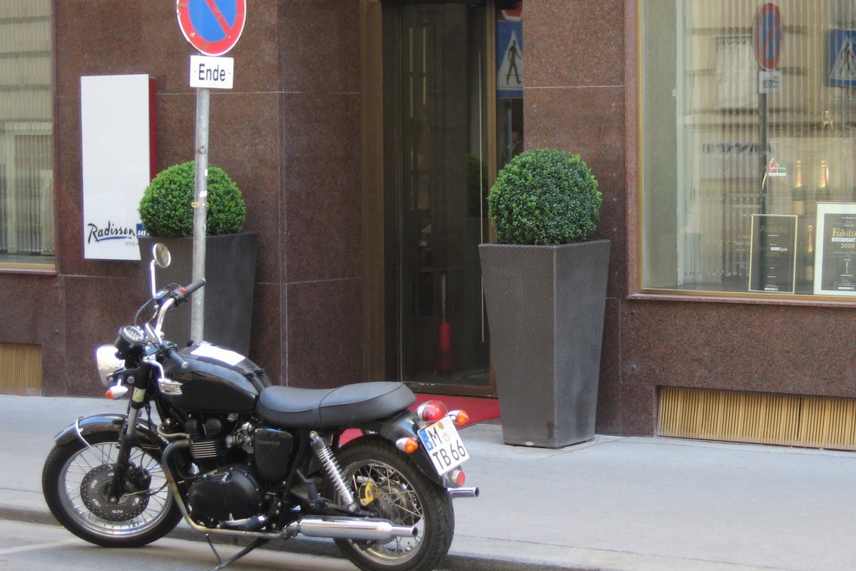 Just a quick trip to Vienna and back over a long Easter weekend. Kind of a highlight was a personal parking space right in front of the hotel in the middle of Vienna center. The hotel staff didn’t know where the next motorcycle parking was, but they were so kind to produce a very officially-looking hotel-stamped document that successfully prevented the local authorities from fining me.โ