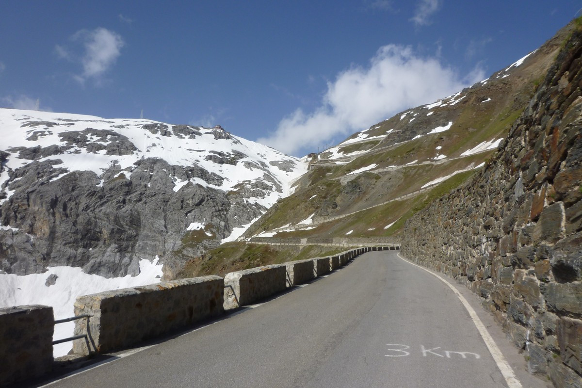 Until 2009, I’ve only read about the legendary 48 hairpin turns of the Stelvio pass. To be honest: It took me some years and substantial improvement in riding skills until I began to like that pass. But landscape and view are spectacular anyway.โ