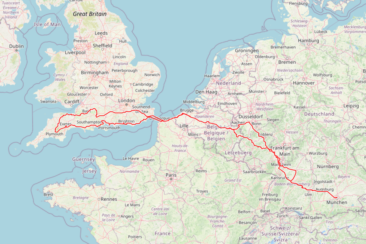 After riding mostly in the Alps, I thought “and now for something completely different”. On the day before starting my tour to Cornwall, I went to the Technical University of Munich for the annual summer party of an institute I worked with in the past. Coincidentally, my former (and later) research partner also planned to go to Cornwall with his family… Meeting there three days later for dinner and drinks was fun. Sammy Miller’s Motorcycle Museum is also a must-see! Vincents! The highlight on the way back was to meet Michael on the Euro Train on his way to Germany and join him. We drove to the Biker’s Loft in Groenedijk (www.grd.be) where you park your motorcycles in a big storage-like hall and all the hotel rooms open to that indoor parking space. Unique.โ