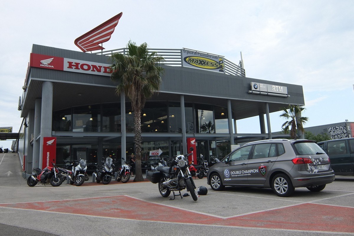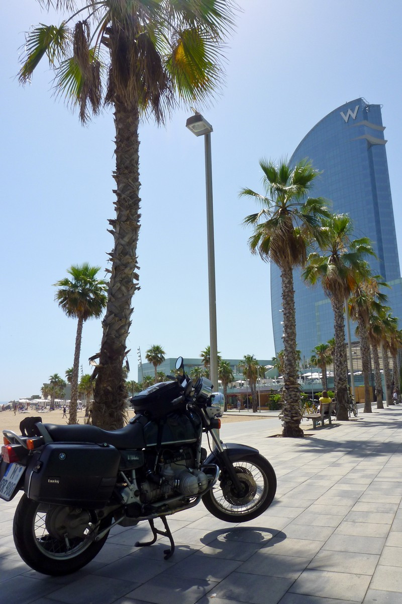 Well… how should I call this trip…? Intended to go to Barcelona on my reliable R 100 R. Sebastian and me rode via Black Forest (Highlight: “Hotel Lawine”) through the French Alps to Nice. On the way to the Verdon Gorge I took a closer look at the (no longer existing) tire profile. Seems like I left too much rubber in the French Alps… and although the strongly committed BMW Motorrad dealer in Toulon tried everything, a new set of these no longer commonly available tires during holiday season took several days. The guy in the workshop said that with almost any other form of breakdown, he would have solved it in a matter of hours. Ok, I get it, tires seem to be important… So I joined my wife and family in Barcelona by train and picked the bike up on my way back. Going there in an air-conditioned TGV was almost too comfortable ๐โ