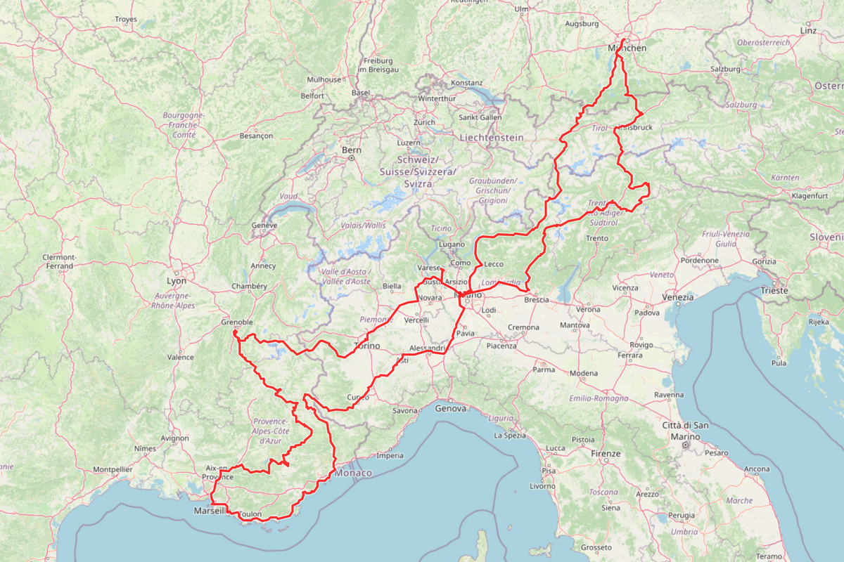 Marseille might not seem like the typical location for a city holiday in Provence, but it is a very interesting place. Sebastian joined me for the first part of the trip through Austria and South Tyrol. Mendel pass and Tonale pass are still some of my all-time favorites. But the French Alps and Provence are even more exciting to me.โ