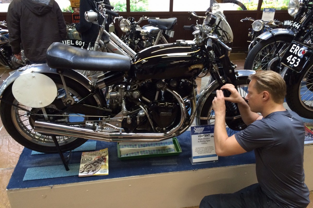 And now for something completely different again! As my good friend Marcus moved to London and re-engaged in riding motorcycles it was time for a tour together, this time taking my Triumph Bonneville “home”. The weather was mostly… British, but didn’t stop us from having fun, admiring the Vincent Black Shadow again in Sammy Miller’s Motorcycle Museum and even ran into Sammy on our way out. We felt very honoured that the legend himself gave us a tour through his workshop. Extremely nice chap.โ