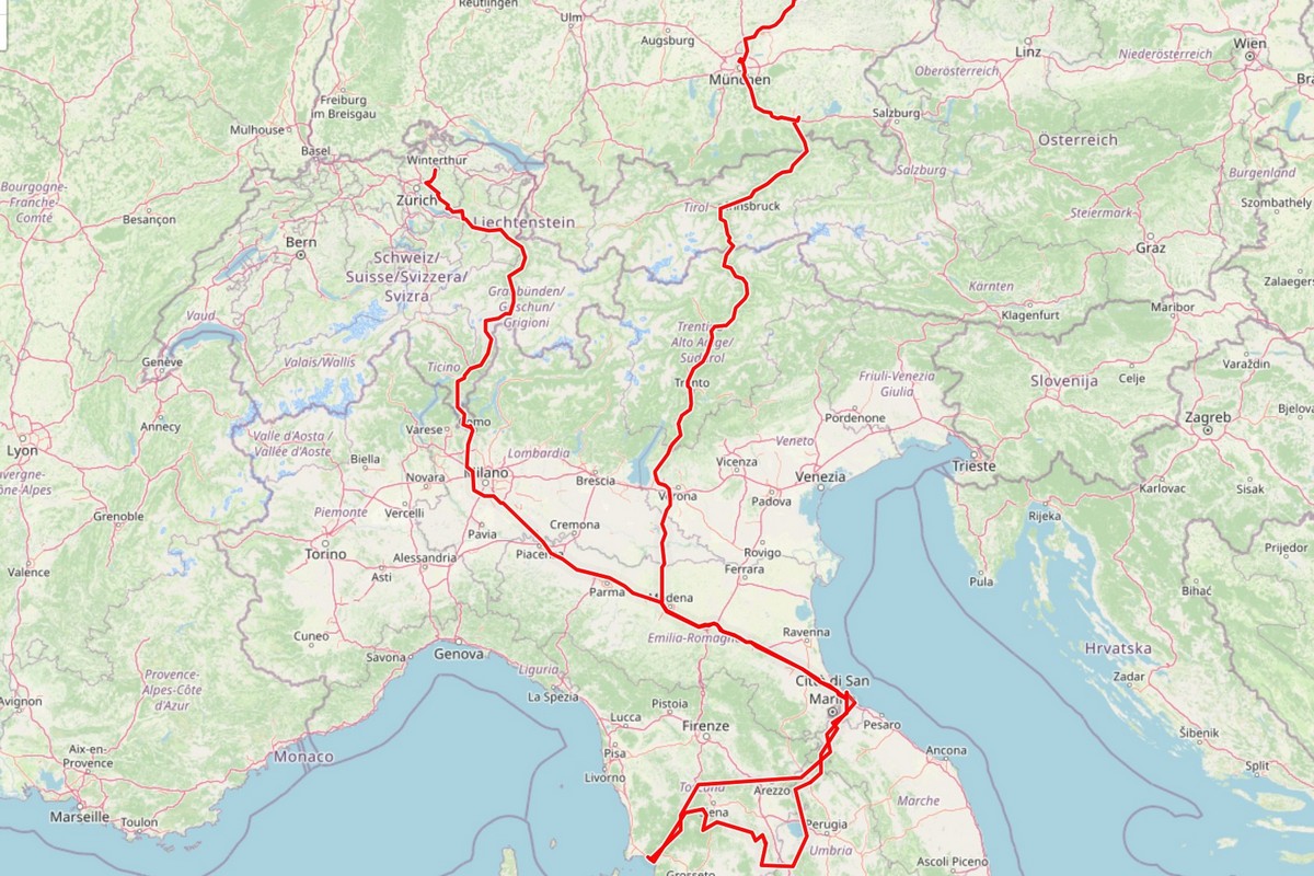Kind of our standard round trip through Italy at the border to France, but for the first time with off-road sections. Starting on some easy flat gravel road sections of TET Italy in the Po Valley, Colle delle Finestre and Colle dell’Assietta and also to the Alta Via del Sale. Not the toughest tracks to ride, but lots of sweat not only because of the very hot weather.